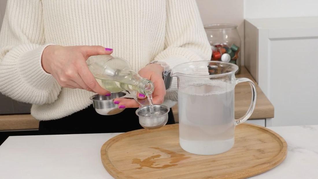 Najpierw zagotuj 1 litr wody w czajniku. Gdy osiągnie temperaturę wrzenia, przelej ją do większego pojemnika. Następnie dodaj płyn do naczyń i dokładnie wymieszaj. Płyn sprawia, że powierzchnia staje się mniej „przyczepna”, a lód łatwiej się odrywa i rozpuszcza. Potem wlej ocet oraz spirytus, najlepiej w równych proporcjach. Ocet działa jako naturalny środek przeciw zamarzaniu, a spirytus dodatkowo wspiera proces rozmrażania. Po wymieszaniu przelej wszystko do butelki z atomizerem.